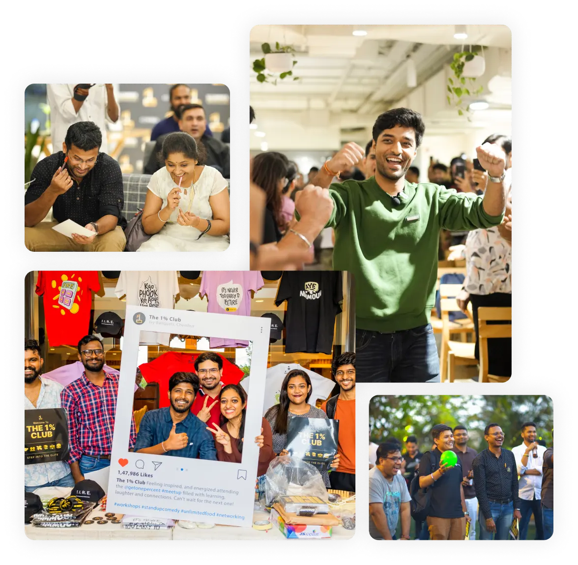 On our Community app, we assure you that when you go back home you will have learnt something new through the multiple workshops/ panel discussions and job updates. We organize + an entertainment experience you have never witnessed before + unique corporate event experience that fosters connections among diverse professionals from various industries, all while being a complimentary benefit for members.